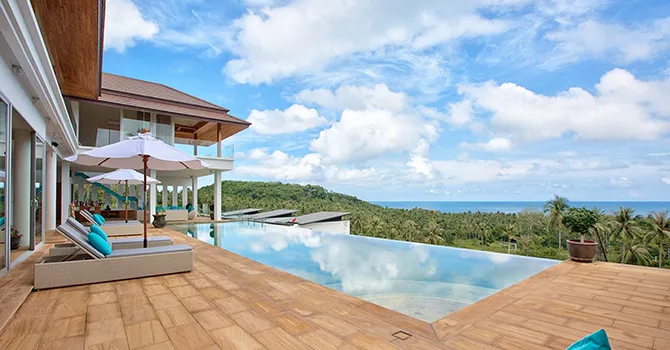 Residence Monsoon is a stunning seven-bedroom luxury home on a large tropical hillside in Bang Por, Koh Samui. It has stunning views of the ocean and a calm sensation of being alone. The villa's modern tropical style makes it a great place for family vacations, group retreats, and special events. There is both modern luxury and outdoor living.