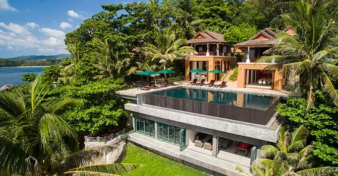 Luxury 8 bedroom Ocean View Villa Sunyata is a beachside haven featuring stunning panoramic views, a sparkling infinity pool and private access to one of the most beautiful beach coves on Phuket island. With direct ocean access, a professional grade kitchen, an expansive pool deck and multiple indoor/outdoor living and dining areas, this elegant estate is the ultimate choice for large groups or multiple families.